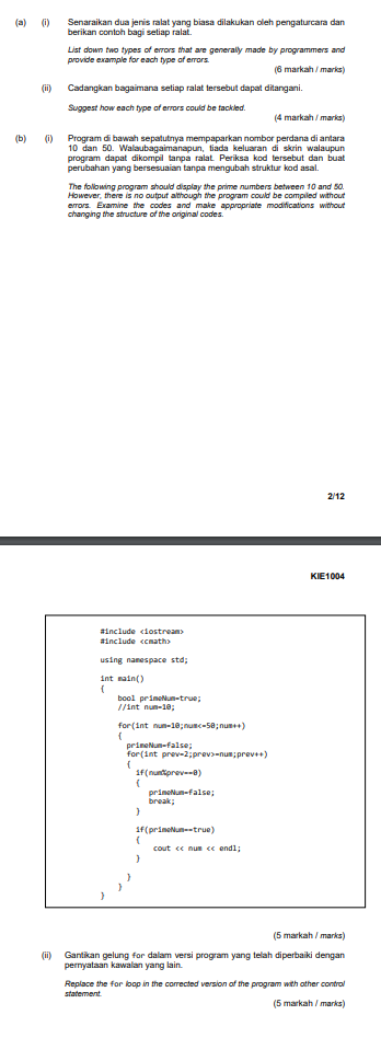 Segmen kod yang berikut ialah kod yang telah dibaiki kesemua ralat. Ralat algoritma tidak menyebabkan ralat sintaks. 3d 2.