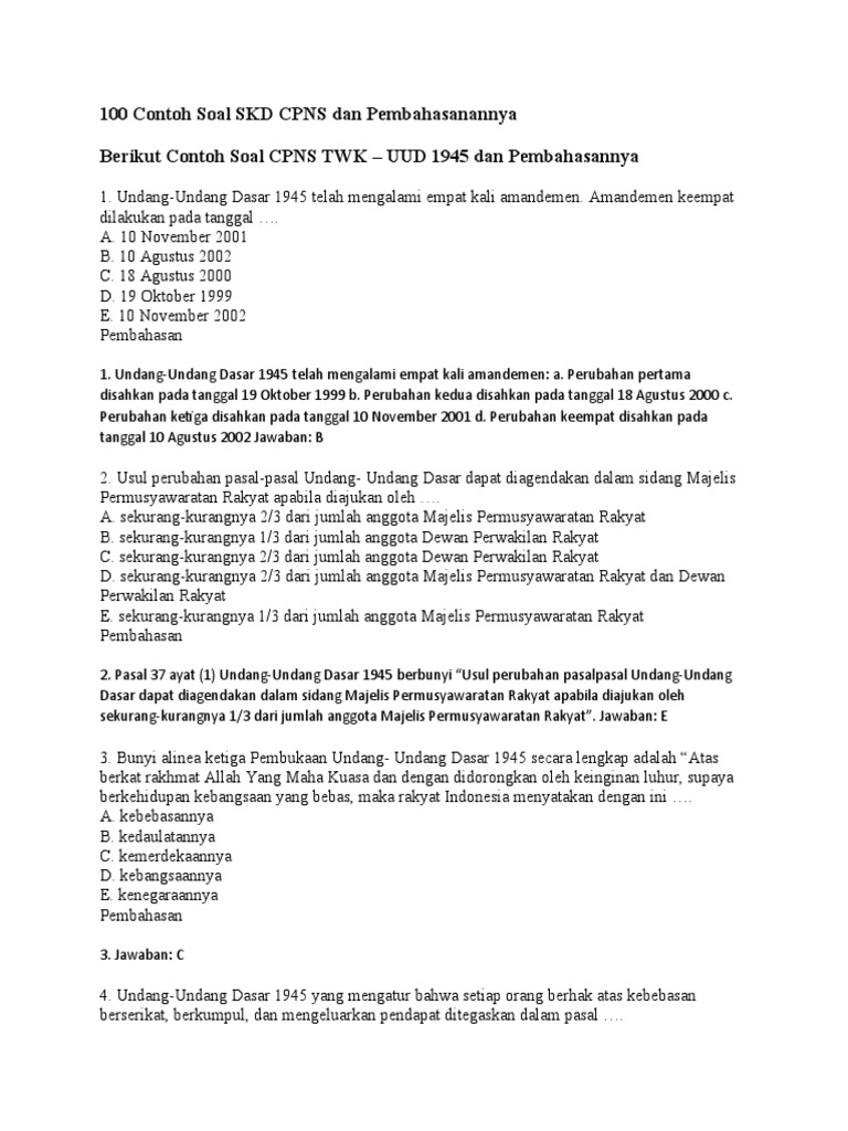 100 Contoh Soal Skd Cpns Dan Pembahasanannya Pdf